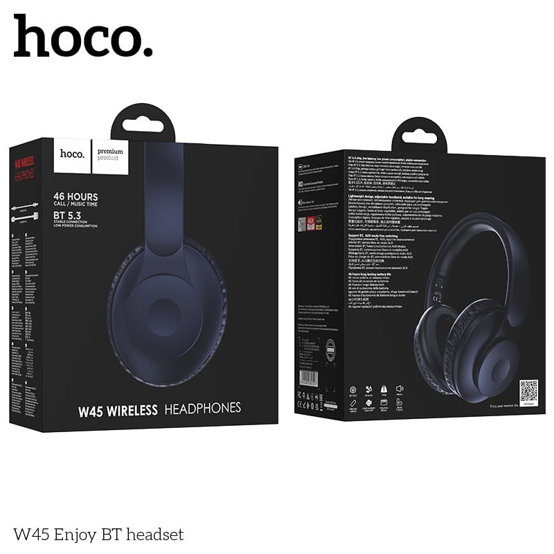 The Hoco W45 Wireless Bluetooth Headphones use Bluetooth 5.3 for connectivity, which provides a stable and reliable connection with your devices. They also have a long battery life of up to 46 hours on a single charge, so you can enjoy your music and podcasts all day long without having to worry about running out of power.